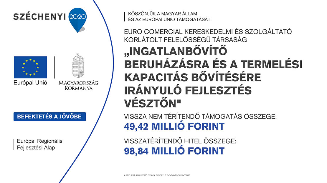 • a projekt címe: „Ingatlanbővítő beruházásra és a termelési kapacitás bővítésére irányuló fejlesztés Vésztőn az Euro Comercial Kft.-nél”.
